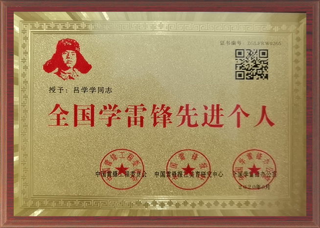 7、2020年,呂學學入選全國學雷鋒先進個人;